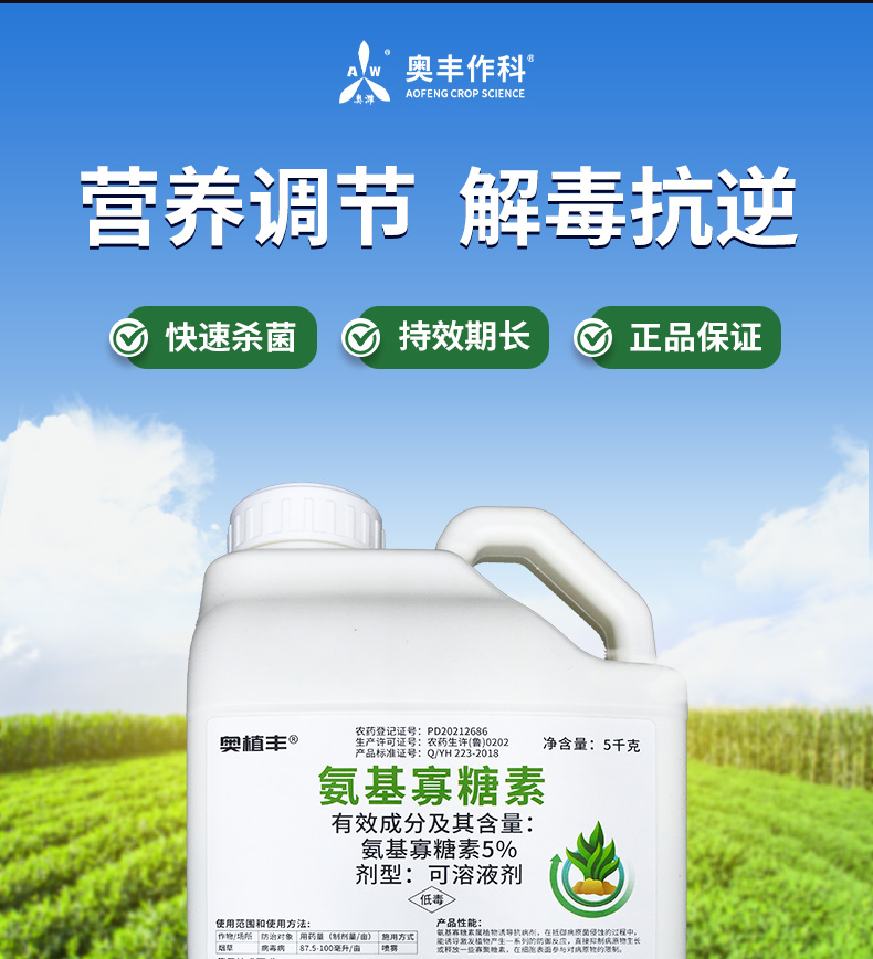 奥潍5%氨基寡糖素桶装杀菌剂防治病毒病果树蔬菜农用奥丰正品农药