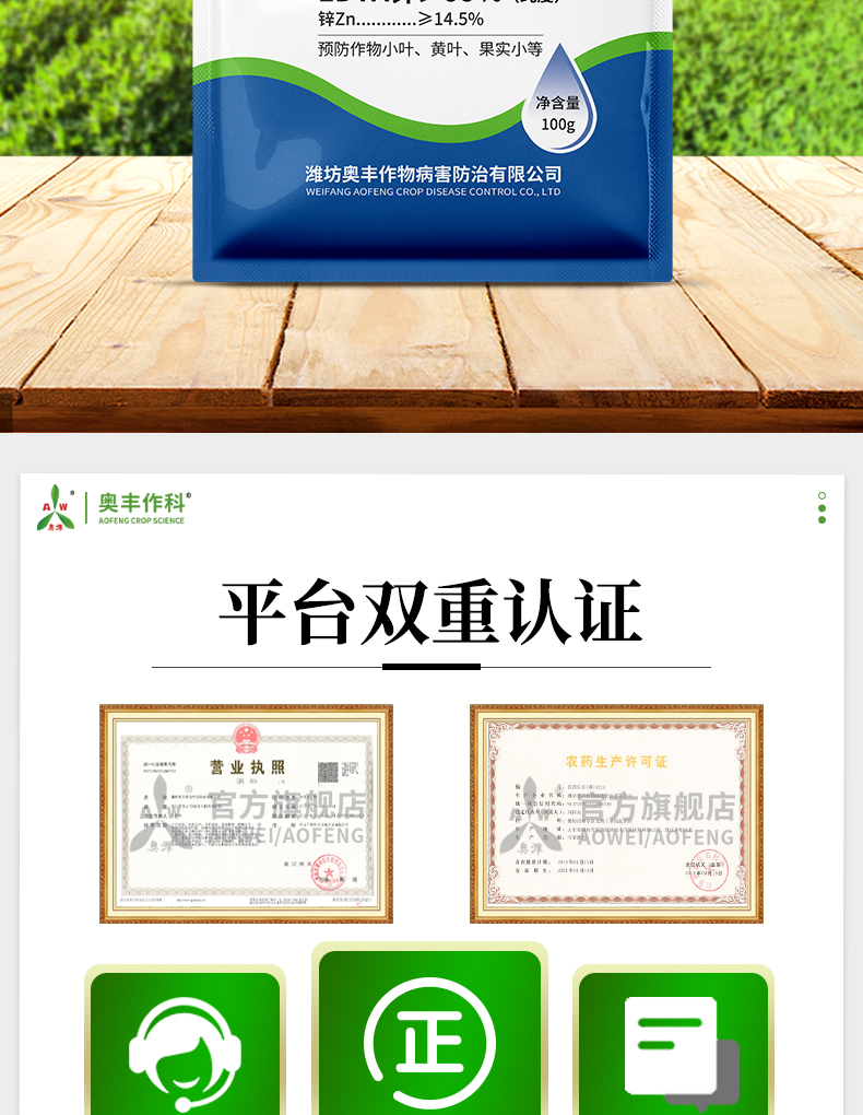 奥潍螯合锌叶面肥果树蔬菜快速补锌吸收率高提质增产农用奥丰正品肥料
