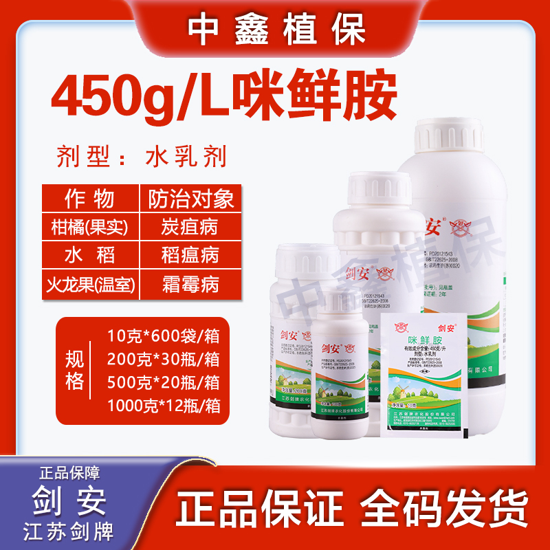 咪鲜胺 剑牌剑安450g/l咪鲜胺炭疽病稻瘟病杀菌剂