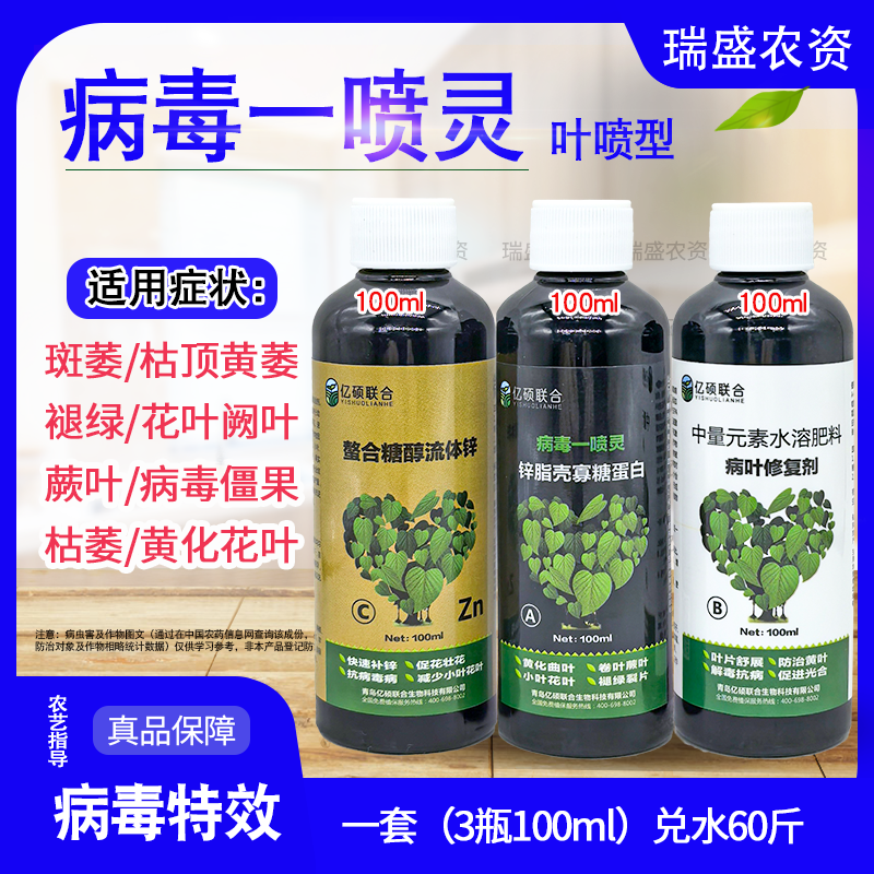 【病毒一喷灵】3合1叶喷组合阳光玫瑰番茄黄瓜辣椒花叶病毒卷叶阙叶病毒病药