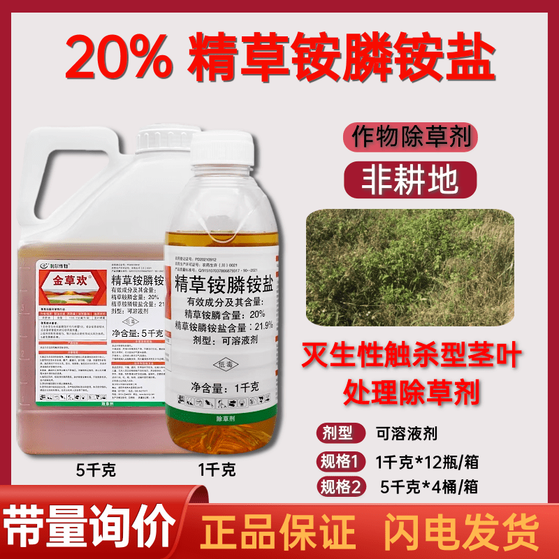 利尔金草欢 20%精草铵膦铵盐 精草铵膦铵盐20% 果园荒地牛筋草小飞蓬草铵膦铵盐草铵膦除草剂